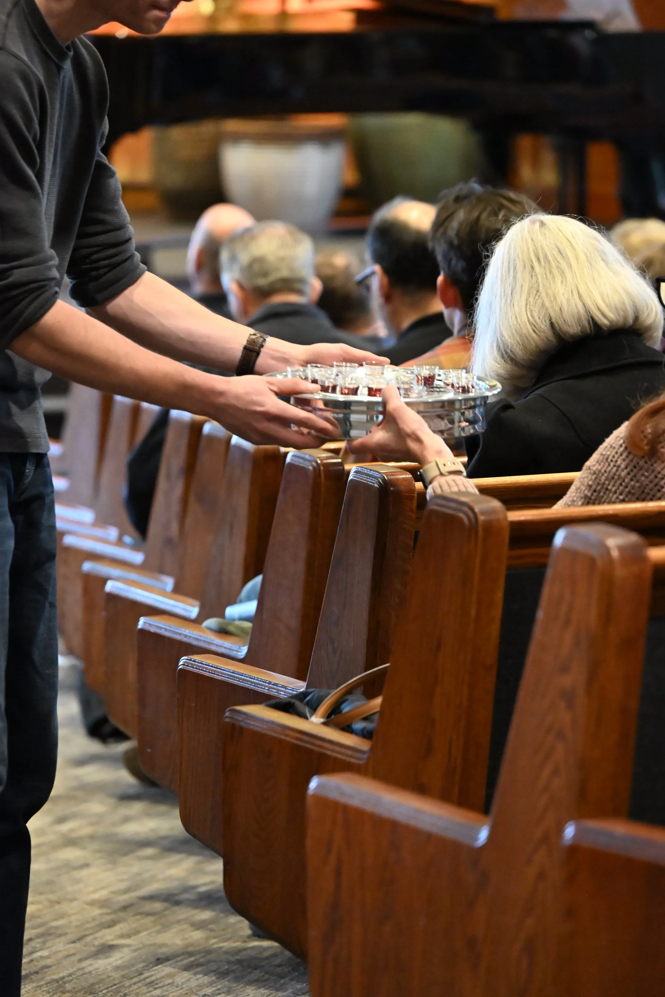 We take communion as a church body to remember Christ’s death and resurrection for the forgiveness of sins.